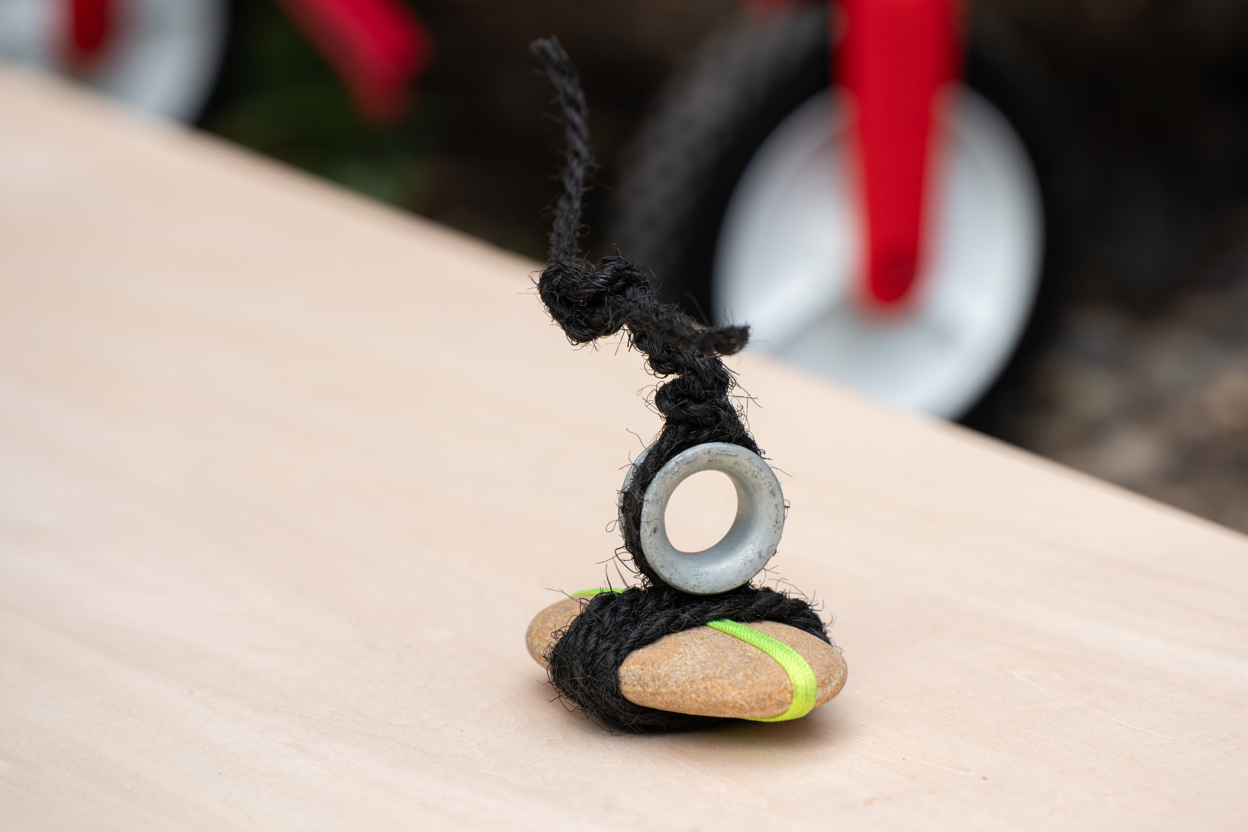 ホームセンターで見つけた“何かの部品”/無印良品の“もったいない品”/作品制作過程で出た“端材”/岩手県の海岸で拾った“流木”/三重県の海岸で拾った“石”/着なくなった服の“ボタン”/いいなと思って買った、“何か”/ 稲刈りを終えた“藁”など。 普段の生活や日常のそばにある魅力ある素材を選んでいます。