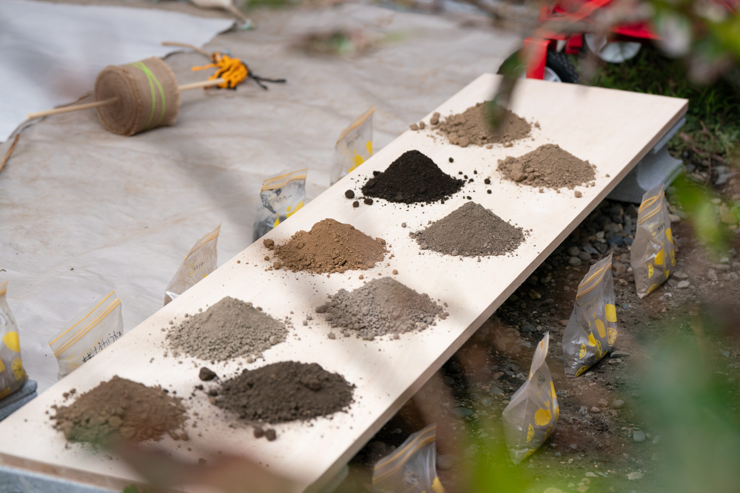 In this work, information about the soil and materials is made visible, and their backgrounds and contexts are carefully presented, designing a pathway for participants to “encounter” materials anew.