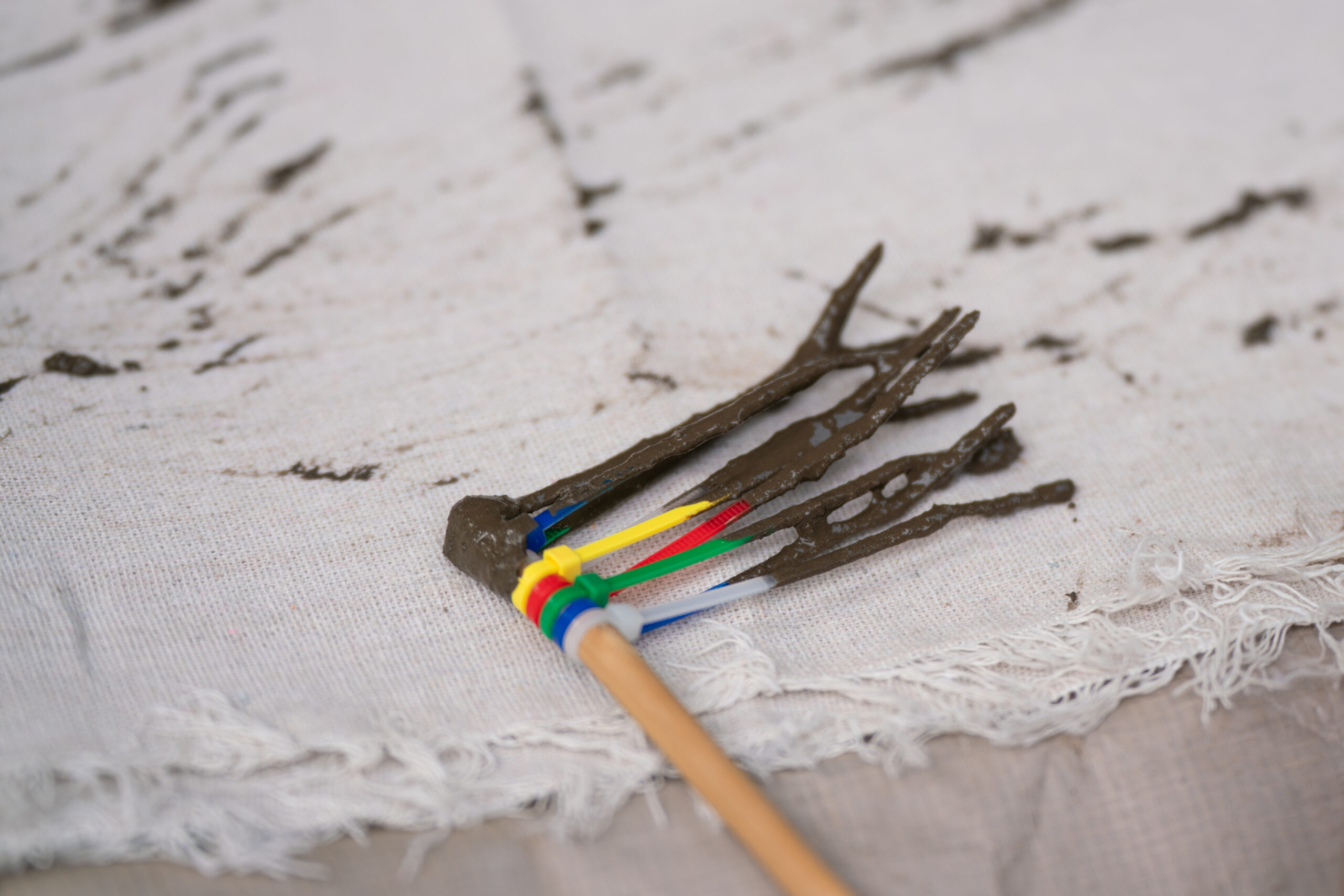 “Almost Paint,Almost Tools.” is both an artwork and an open project that questions—and gives form to—how we relate to the materials around us and to the act of making. By treating soil collected from regions across Japan as “paint,” and drawing with makeshift, “clumsy tools” made from familiar materials—tools that never fully become tools—the work raises fundamental questions: What does it mean to create? What is a material?